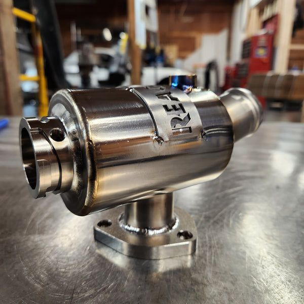 The ReacTiv Fabrication Titanium “Stubby” Swirl/Fill Pot delivers full titanium performance in a compact, space-saving design. This ready-made swirl/fill pot features a high-polish titanium finish for a clean, show-quality look - perfect for FD3S RX-7 builds that demand both function and visual appeal.